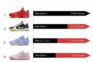 10月份NBA球鞋上脚时间排行!前二均为科比球鞋 布克第四!