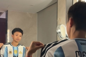 球王的小迷妹张琳艳社媒晒照,上身最新款阿根廷梅西10号球衣