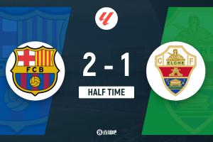 半场-巴萨暂2-1埃尔切 亚马尔破门费兰-托雷斯建功