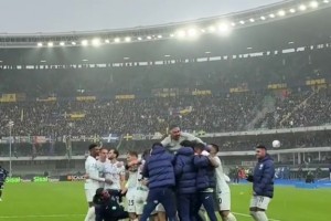 不容易!实拍:雨战读秒绝杀维罗纳,国米众将纷纷跑入球场庆祝