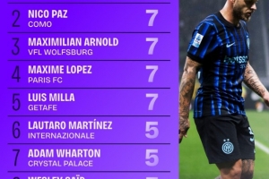 3、马克西米利安-阿诺德(沃尔夫斯堡):7次