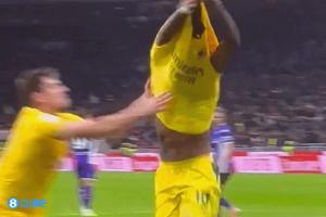 随后庆祝完,福法纳给莱奥把球衣领子立起来。