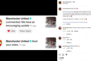 体育资讯10月20日讯 本轮英超曼联2-1击败利物浦,取得两连胜。赛后著名曼联球迷“蓄发哥”发布社媒晒出截图,从图中可以看到,曼联官方社媒点赞了他的视频,并评论道:我们有一个令人鼓舞的进展。
