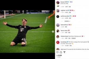 德甲官方账号也现身评论区鼓励道:“处子球总是很特别!相信你未来还能进更多球。”
