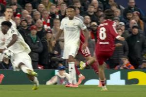 索博打门击中琼阿梅尼手臂,裁判检查VAR后没有判罚点球
