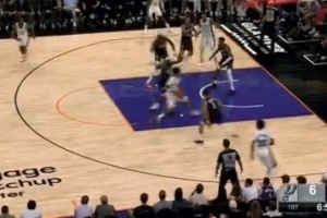 就差一点点!杰伦-约翰逊三节结束加长压哨三分命中 但先超时!