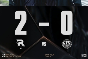 第二局比赛Junjia巨魔一级吃埋伏掉闪,HongQ沙皇更是被KT中辅玩弄,中路送出一血之后又在下路连续两次被越塔强杀!KT早早拿下3K经济优势!中期资源团HongQ沙皇更是已经失了智,开推送客+反向漂移各种幽默下饭操作开始体现!KT打团十分轻松没有一点压力,三次团灭CFO,25分钟不到就拿下龙魂结束比赛!2-0收下三个赛点!