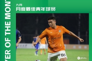 中乙官方:北理工球员程烨垚获9月最佳青年球员,贡献3球2助攻