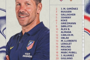 马竞主场对阵塞维利亚大名单:格列兹曼领衔,巴里奥斯缺席