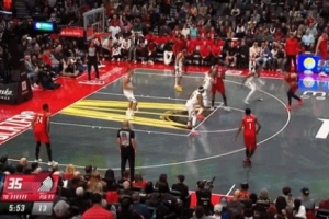 手真硬!布鲁斯-布朗扑防不及 格兰特三分出手命中还加罚!