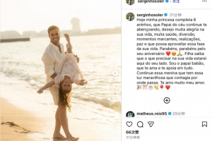 塞尔吉尼奥社媒祝女儿6岁生日快乐:愿你平安喜乐,健康成长