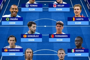 后卫:卡拉雷斯(西班牙,5000万)、约罗(法国,5500万)、萨姆·别克马(荷兰,2800万)、卡约德(意大利,2000万)