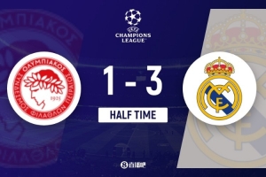 体育资讯11月27日讯 北京时间4:00,欧冠联赛阶段第5轮,奥林匹亚科斯vs皇家马德里,比赛在卡莱斯卡基斯体育场打响!上半场,奇奎尼奥帮助奥林匹亚科斯率先破门!随后姆巴佩7分钟内上演帽子戏法!维尼修斯进球被吹;琼阿梅尼远射中横梁!半场结束,皇马暂3-1领先奥林匹亚科斯。