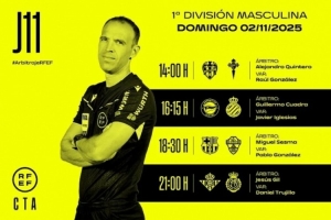 西甲第11轮部分场次裁判安排:塞斯马执法巴萨主场迎战埃尔切
