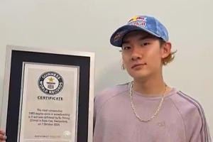 苏翊鸣更新社媒,感谢吉尼斯认证,苏翊鸣写道:感谢吉尼斯世界纪录的再次认证,希望自己在未来继续努力,带领中国单板滑雪创造与打破更多的世界纪录!
