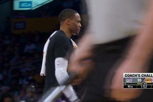 比赛最后时刻,威少向工作人员投诉场边一位球迷骂他,工作人员随后将这名球迷请离了球场。在解决了此事之后,加之比赛早已失去悬念,威少随之直接离开了球场。