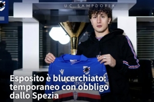 当地时间1月4日,桑普多利亚俱乐部在官网发布公告称:“桑普多利亚宣布,以租借加强制买断的方式从斯佩齐亚签下了球员萨尔瓦托雷·埃斯波西托。在买断之后,桑普多利亚将和萨尔瓦托雷·埃斯波西托签约至2030年6月30日,并且俱乐部还有权再优先续约一年。”