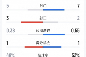 体育资讯2月1日讯 本轮英超,曼联半场战罢1-0领先富勒姆,以下为双方半场数据对比: