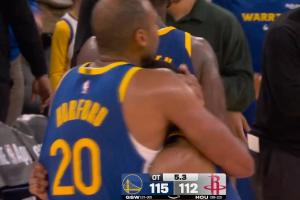 GIF-梅尔顿自投自补打进 与霍福德紧紧相拥 勇士领先3分!