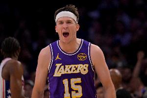 本场比赛,湖人后卫里夫斯高效全面,出场38分钟16投8中,三分6中3、罚球7中6拿到25分4篮板5助攻3抢断1盖帽,正负值+5。