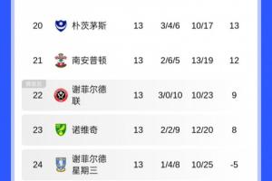 英冠不好踢英冠积分榜:莱斯特城仅第14,圣徒差点跌入降级区