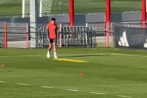 朝着复出迈进!穆西亚拉今日继续在拜仁基地单独训练