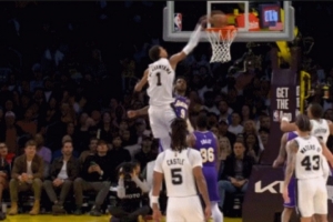 这什么怪物?文班亚马晃飞防守突入禁区暴力隔扣 布朗尼成背景板