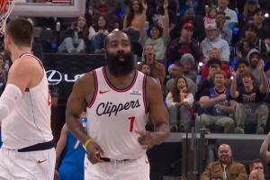登峰造极的登!哈登开场连得12分 包揽球队所有得分!