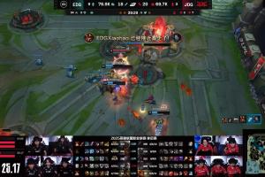 本局比赛JDG在15分钟就取得5k经济优势,但最终还是遭到EDG翻盘;JDG下路Peyz到比赛结束都还对位领先4k经济。