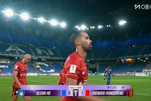 体育资讯9月17日讯 亚冠精英联赛第一轮,成都蓉城上半场客场1-0领先蔚山HD。
