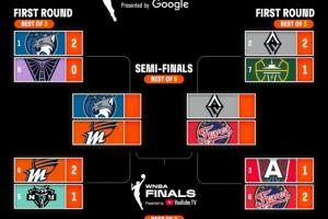 体育资讯09月20日讯 WNBA季后赛首轮战罢,半决赛对阵确定,具体对阵如下: