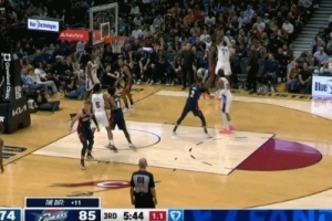 问题不大!米切尔速推反击突破喂饼阿伦暴扣!骑士轰出13-0!