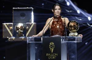 体育资讯9月24日讯 邦马蒂连续第三次捧起女足金球奖,西媒elperiodico撰文介绍邦马蒂身穿的这身华丽礼服。