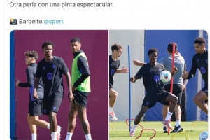 体育资讯9月24日讯 据记者Sergi Capdevila报道,16岁中卫库鲁马参加巴萨一线队训练。