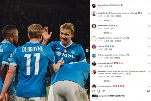 本场比赛德布劳内两度助攻霍伊伦破门,德布劳内在社媒也晒出与霍伊伦的庆祝合影,配文写道:“欧冠之夜!”