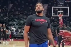 体育资讯10月2日讯 尼克斯官方社媒更新动态,晒出了唐斯赛前热身的视频,并at了林书豪。