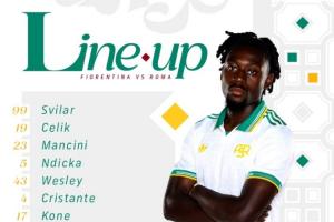 罗马首发:99-斯维拉尔、19-切利克、23-曼奇尼、35-巴尔丹齐、5-恩迪卡、43-韦斯利、12-齐米卡斯、4-克里斯坦特、17-科内、18-苏莱、9-多夫比克