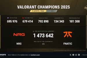 体育资讯10月8日讯 据国外Esports Charts数据网站统计,瓦罗兰特巴黎全球总决赛的峰值观众为147w,不及CS2 Major和英雄联盟MSI。