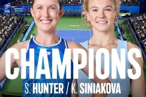 西尼亚科娃/亨特组合直落两盘以6-3、6-2完胜8号种子达尼丽娜/克鲁尼奇组合,斩获2025武网女双冠军。