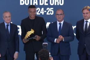 生涯首次获奖!姆巴佩领取24-25赛季欧洲金靴,皇马全队到场支持