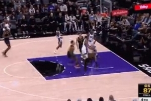 都是硬茬儿!斯玛特与索汉相撞一起倒地 裁判吹了斯玛特犯规