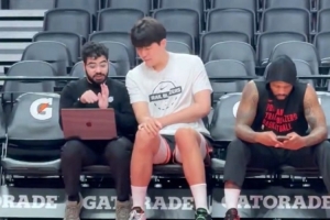 就得硬一点!杨瀚森赛前和助教对抗热身 篮下终结连续暴扣+勾手