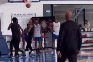 王牌对决!坎宁安贴防哈登到篮下直接大帽封盖后者上篮