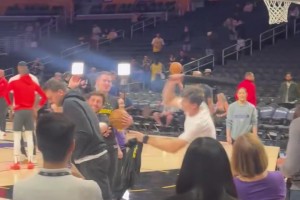 上一篇: 老头手感不错啊!老詹赛前投篮热身连中弧顶三分!